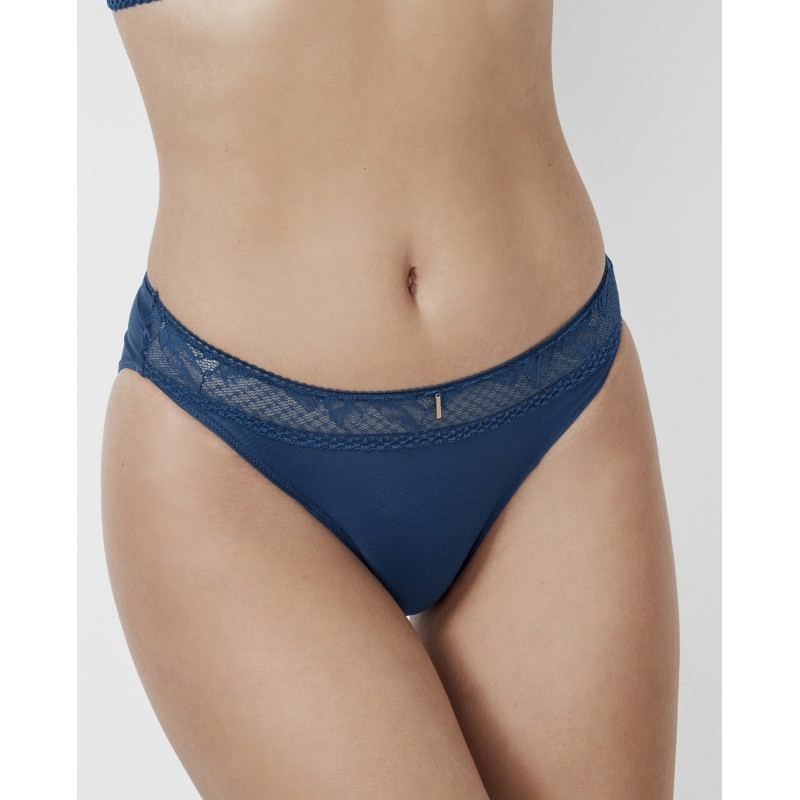 Classic bikini bottoms with a lace detail at the front, adding softness and exquisite detail to the garment. The elastic waistband provides a non-marking effect. The Malitzia collection, to which it belongs, represents a perfect dance between delicate and daring.