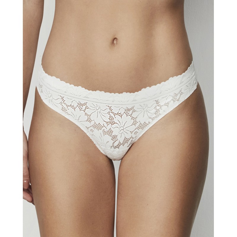 Thong panties in which comfort and elegance go hand in hand thanks to their seamless, mark-free pattern and elasticity, combined with this season's trendy floral lace.