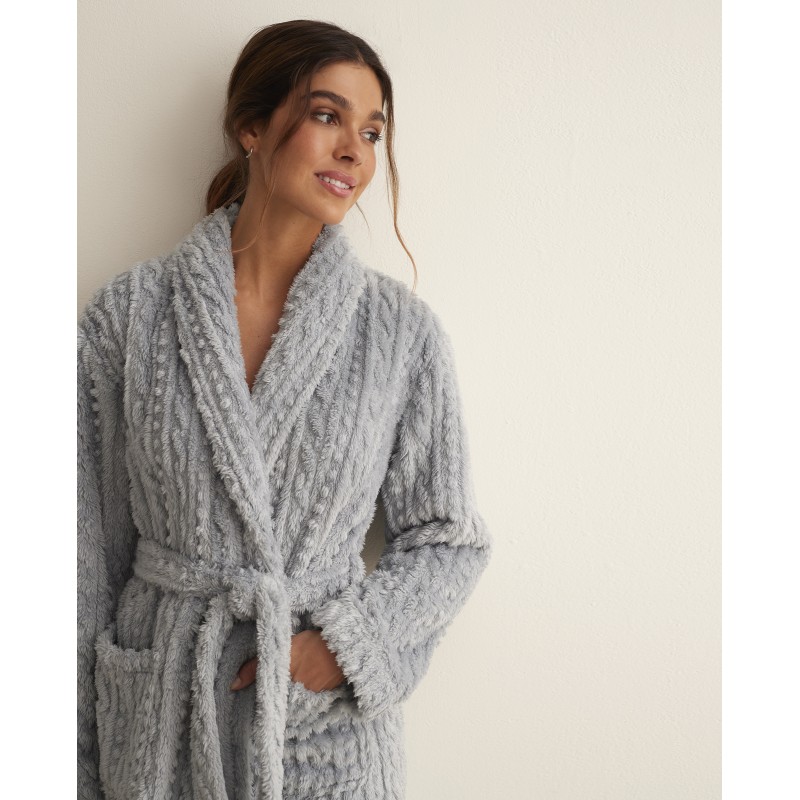 Super soft crossed dressing grown with tie at the waist and pockets. A very warm garment ideal to wear over your pajamas or nightgown on cold days.