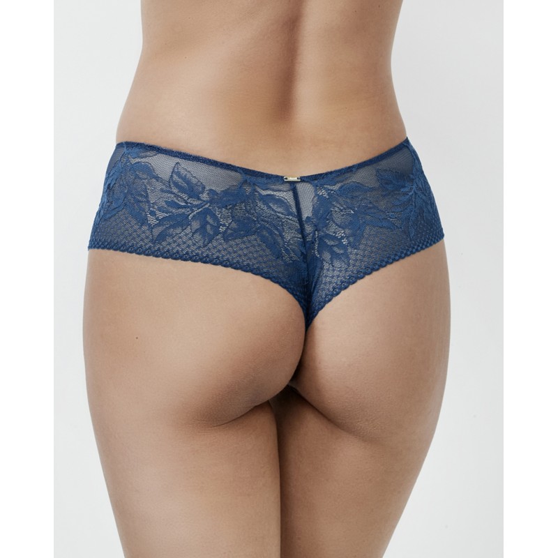 Culotte-cut panties with floral lace on the front and back, adding softness and exquisite detail to the garment. The elastic waistband provides a non-marking effect. The Malitzia collection, to which it belongs, represents a perfect dance between delicate and daring.