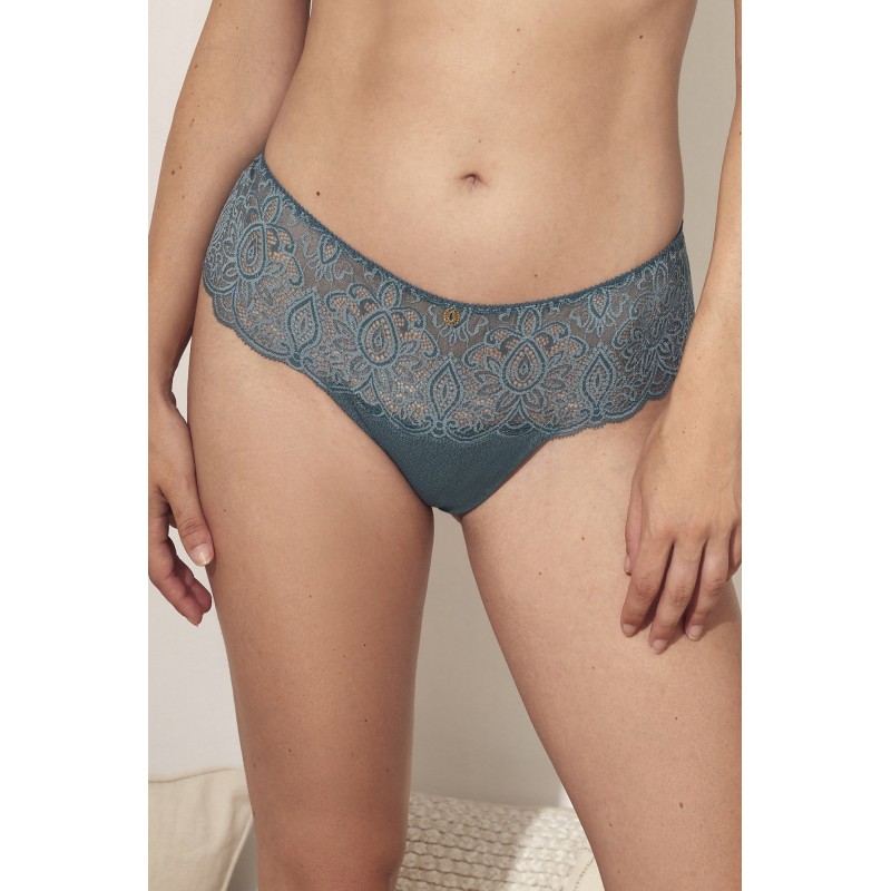 Culotte thong with an exquisite design inspired by an elegant, seductive and daring woman. Its floral lace of European origin and matte effect generates a very flattering effect for the skin.