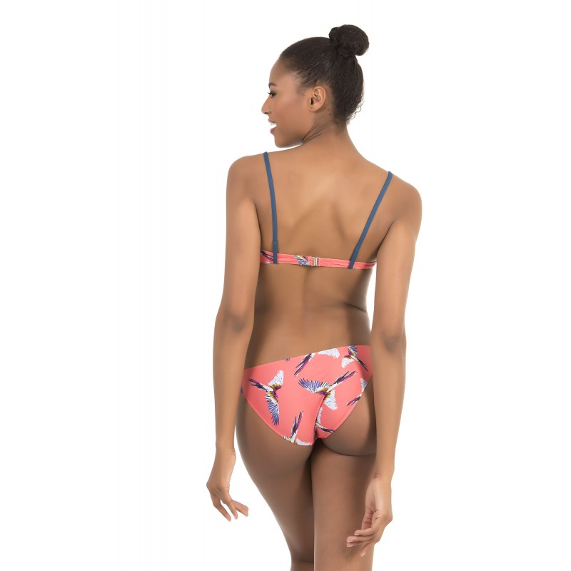 Deep neckline bikini top. With underwire and cups. With straps for a perfect fit. Bird print. Orange.