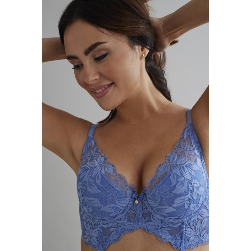 Deep neckline bra. Shape and enhance. Very attractive aesthetics and with character. Its floral lace makes it a very current and youthful design.