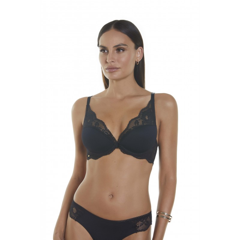 Semi-bralette with deep neckline. Shapes and enhances. A new design with floral lace and romantic aesthetics, which is also characterized by its comfort.