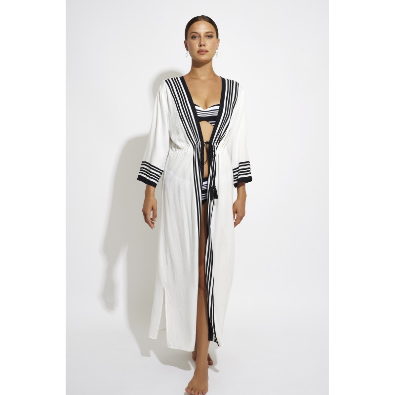 Long kimono dress with sleeves. Ideal to wear with your bikini or swimsuit.