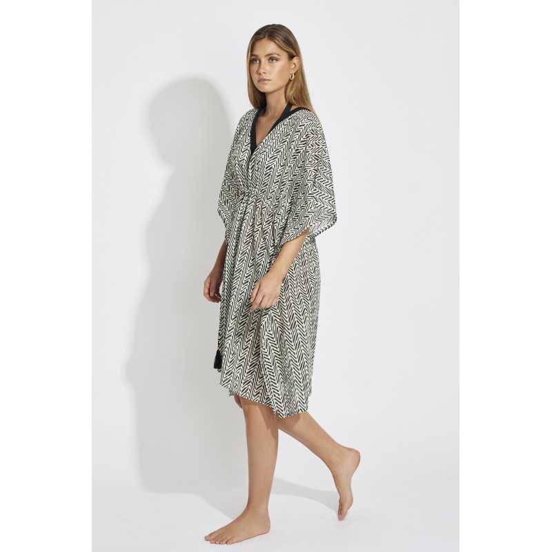 Short fine fabric dress. With a beautiful ethnic print, ideal to wear over your matching bikini or swimsuit.