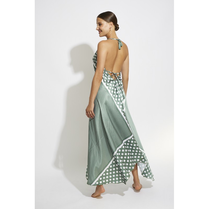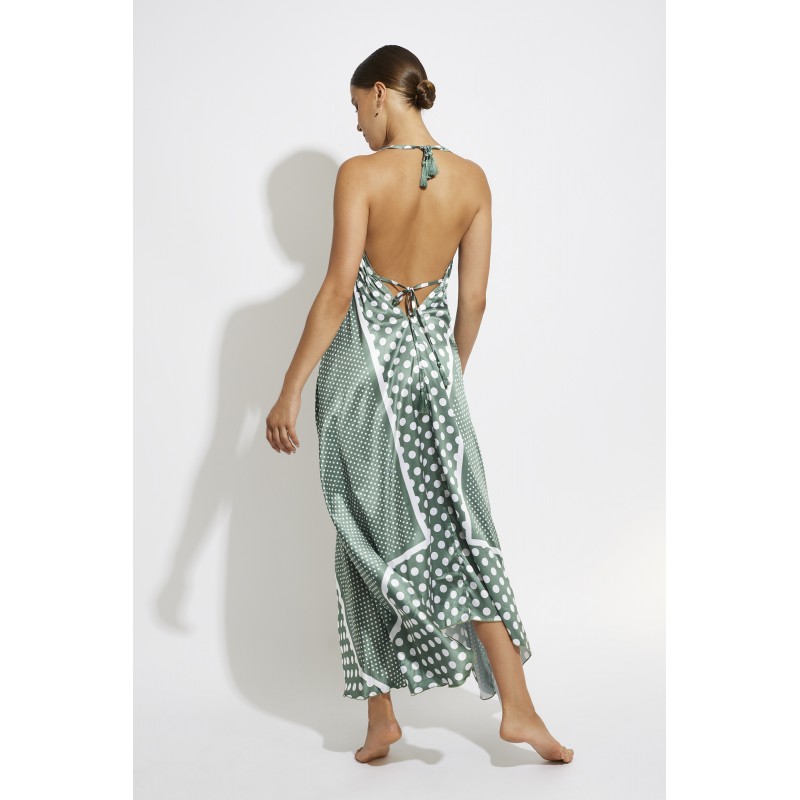 Long sleeveless dress with straps. Elegant and super cool fabric, ideal for summer days.