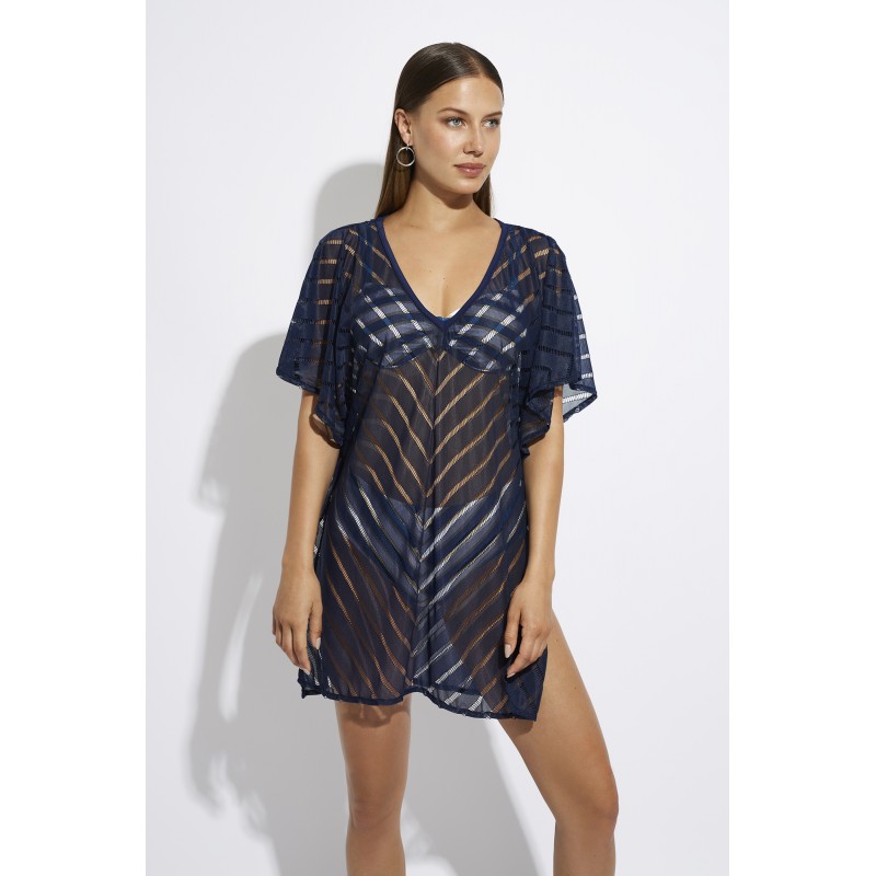 Short sleeve dress. Very fresh and light, ideal to wear over your bikini or swimsuit.