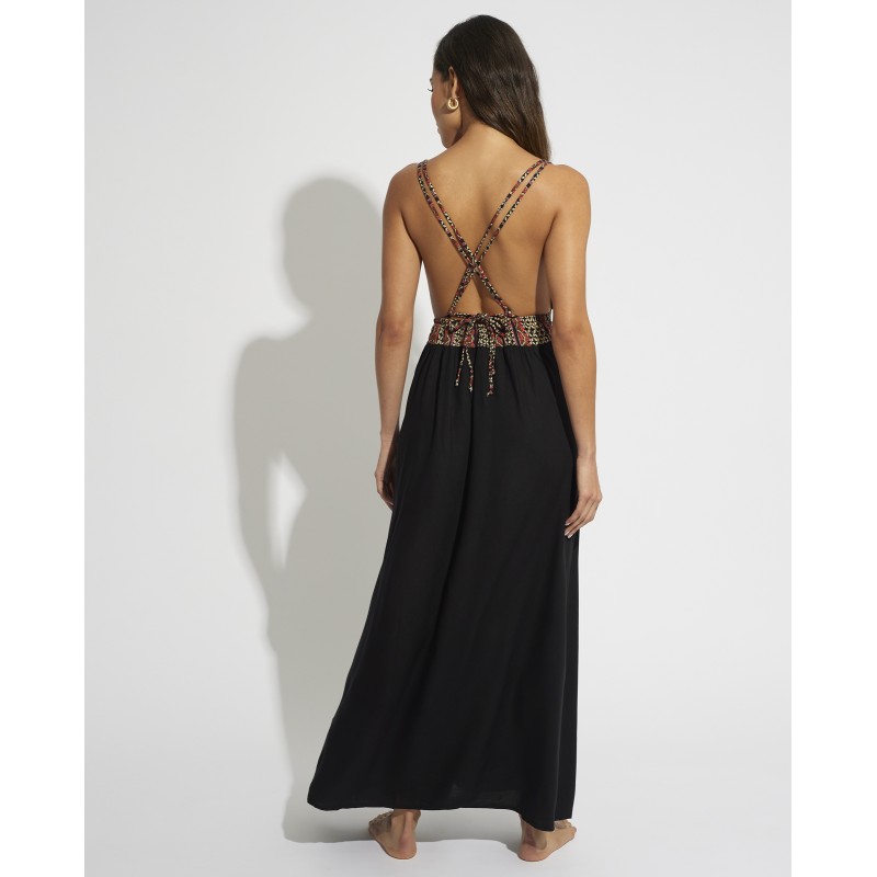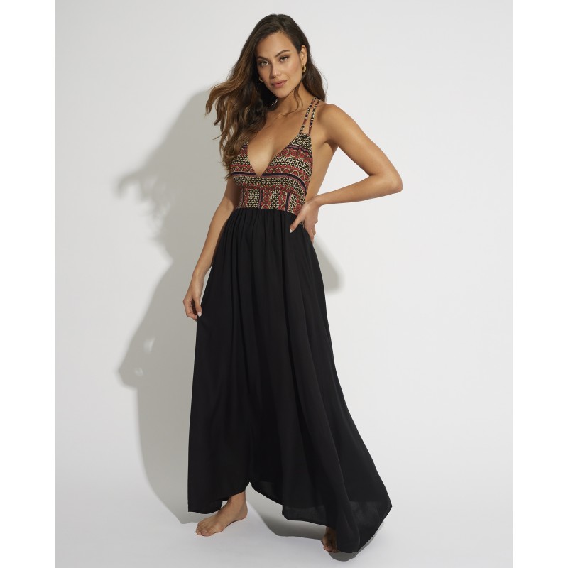 Very cool long dress. With an ethnic style geometric pattern inspired by tribal designs and unique details that give it an authentic and original touch. Ideal to wear over your bikini or swimsuit.
