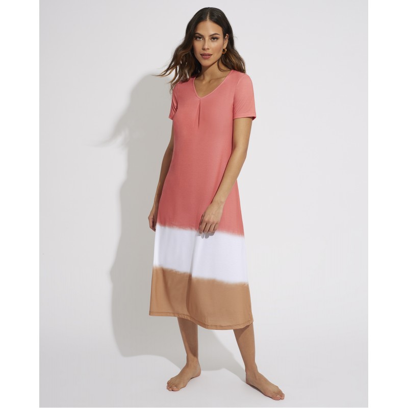 Long dress with a classic cut, very comfortable and with a very fresh, summery style in 3 combined tones.