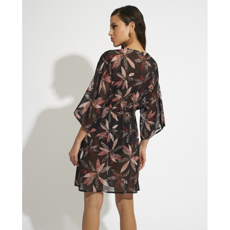 Crochet dress with very cool side cut. Its jungle print conveys a feeling of freshness, joy and exoticism. It is a perfect piece to show off a wild and tropical style on the beach or pool. Ideal to wear over your bikini or swimsuit.