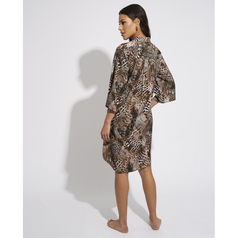 Shirt style dress. Its wild and bold print will connect you with nature and the beauty of African fauna. With details that provide an elegant and sophisticated touch, they will make you feel unique and powerful. Ideal to wear to match your bikini or swimsuit.