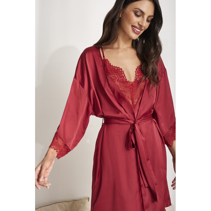 Dressing gown that combines a beautiful geometric and floral lace with a subtle golden embellishment. This design inspired by fun and freedom is ideal to enjoy our wildest side.