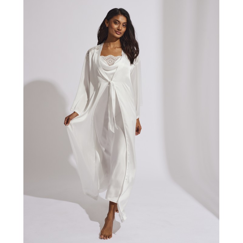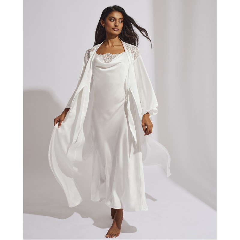 Long lingerie robe. Its classic design with lace details gives it a romantic and bohemian style at the same time. This garment combines sensuality, freshness and elegance, ideal for free and authentic women.