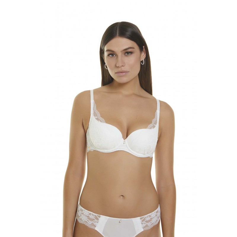essential moulded bra. Wraparound. With a romantic design, its floral lace makes it a highly femenine and unique piece.
