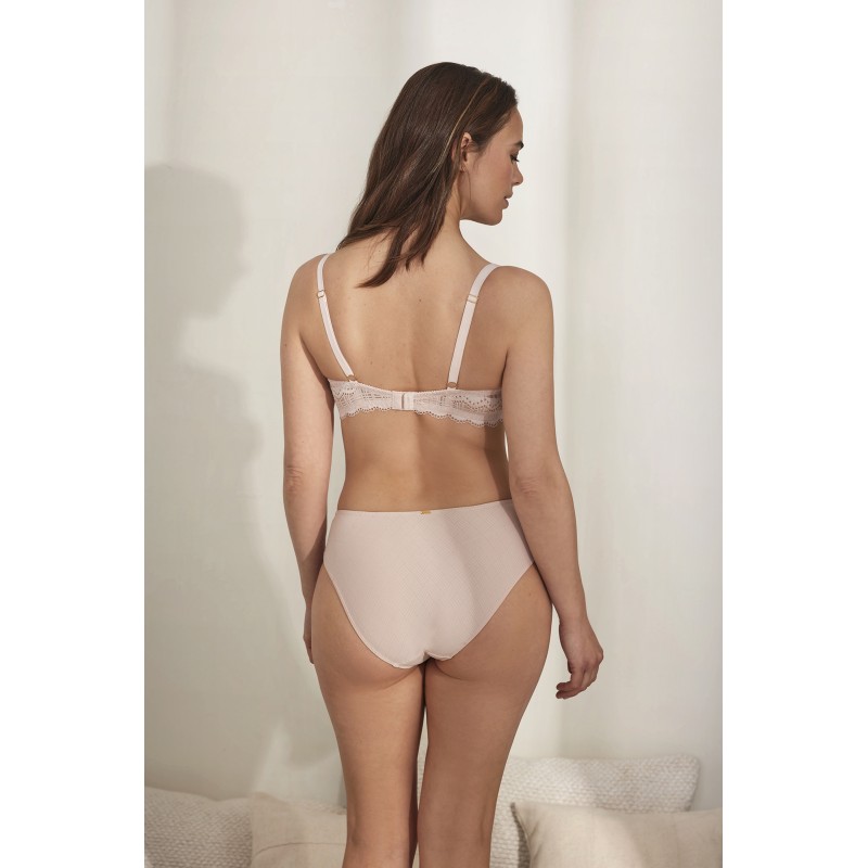 Shaping essential bra. Enveloping effect. It is a super special piece with lace details that combines an air of sensuality and simplicity at the same time.