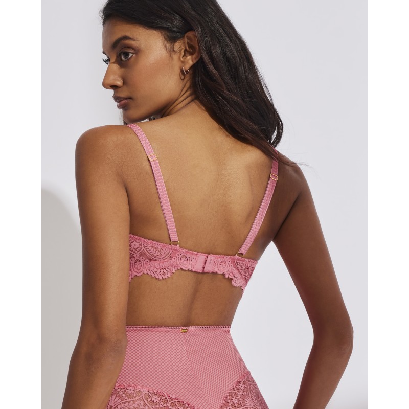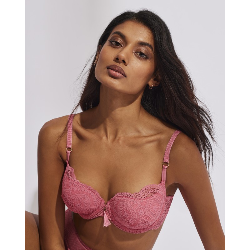 Essential shaping bra. Surround effect. Its spectacular lace design gives it a romantic and bohemian style at the same time. This garment combines sensuality, freshness and elegance, ideal for free and authentic women.