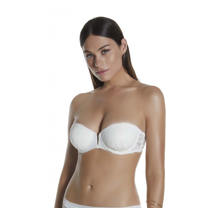 Bra with removable straps with shaped foam and underwire. It enhances the chest and guarantees a good hold avoiding the unwanted sliding effect. With a young and romantic design. Its floral lace makes it a highly femenine and unique piece.