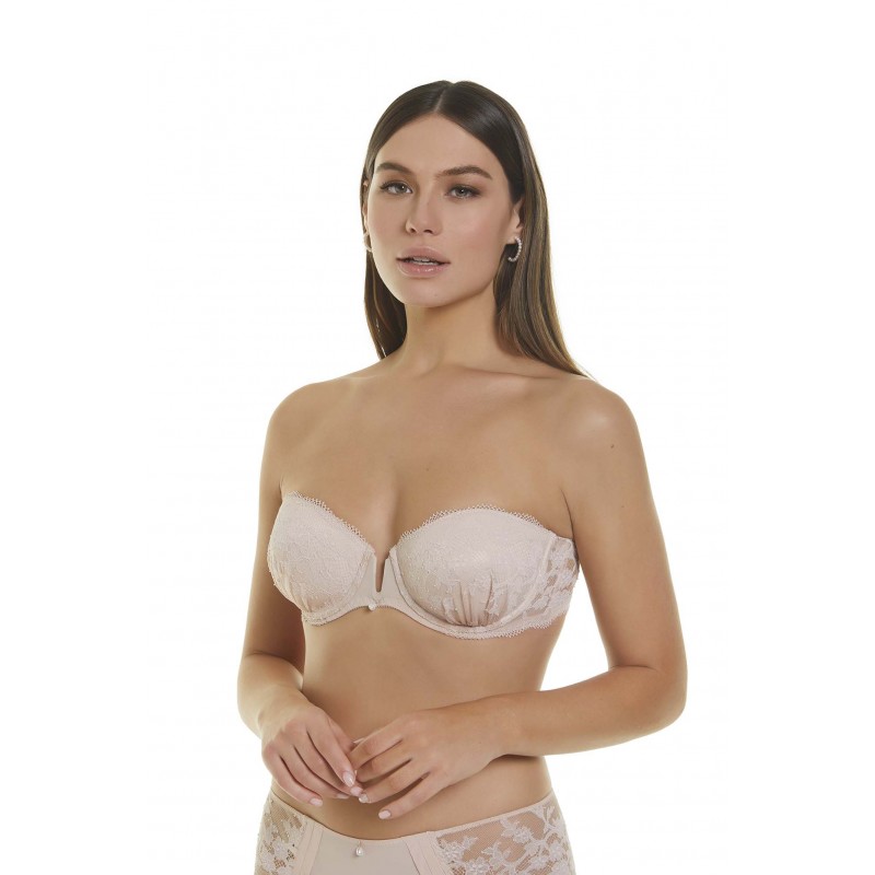 Bra with removable straps with shaped foam and underwire. It enhances the chest and guarantees a good hold avoiding the unwanted sliding effect. With a young and romantic design. Its floral lace makes it a highly femenine and unique piece.