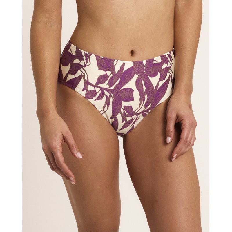 High-waisted bikini bottoms with a classic cut. Featuring a spectacular tropical-inspired print, where organic shapes create a sophisticated and summery visual effect. Collection with SPF 50+.