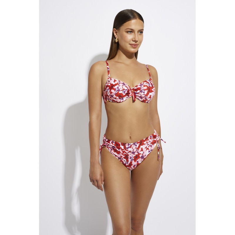Classic high cut bikini bottom. Its floral print makes it a cheerful and youthful piece.