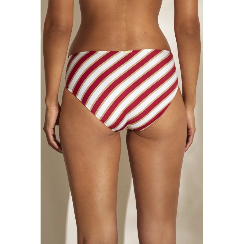 High cut bikini bottom. Its braided design with sailor stripes makes it an aesthetically attractive and original piece.