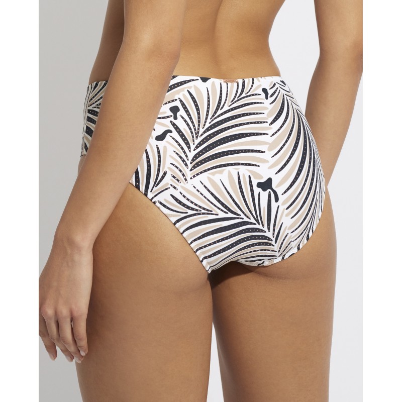 High-waisted bikini bottoms with classic cut. This print is the ideal choice for those looking for a tropical and fresh look. Palm leaves represent the exoticism and beauty of the tropics, conveying a feeling of escapism and freedom.