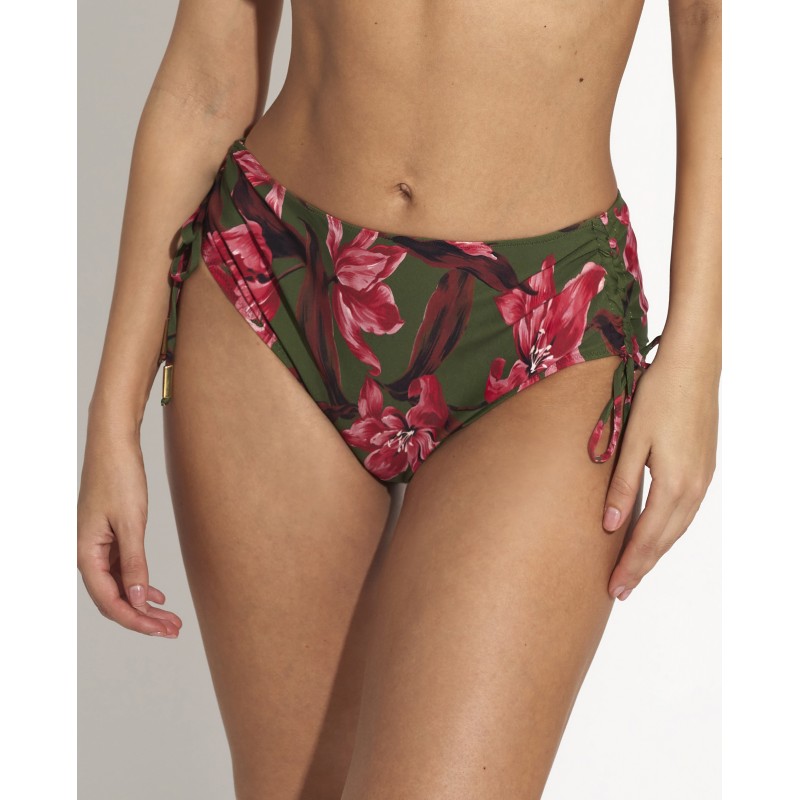 High-waisted bikini bottoms with classic cut. With a tropical print that evokes the beauty of a paradise island. Its color and freshness transmit the joy and energy of the most anticipated season of the year.