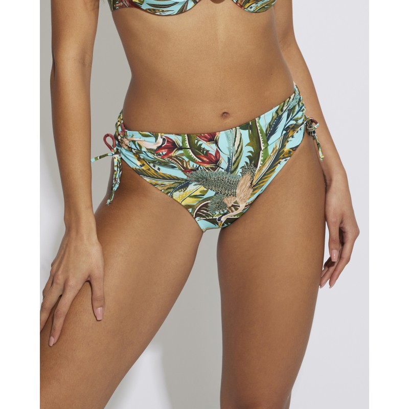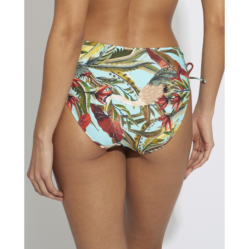 High-waisted bikini bottoms with classic cut. This spectacular design with vibrant tones inspired by wild flora and fauna reflects the exuberance and vitality of tropical wild nature.
