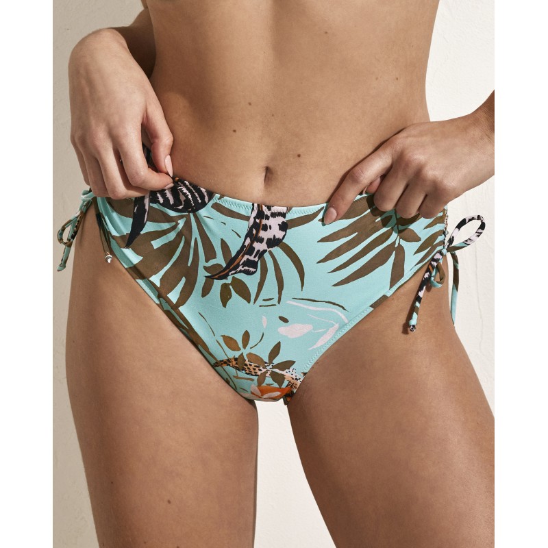 Classic cut high-rise bikini bottom. Its design captures the energy of nature, with prints that transport you to vivid and mysterious landscapes of the Amazon rainforest.