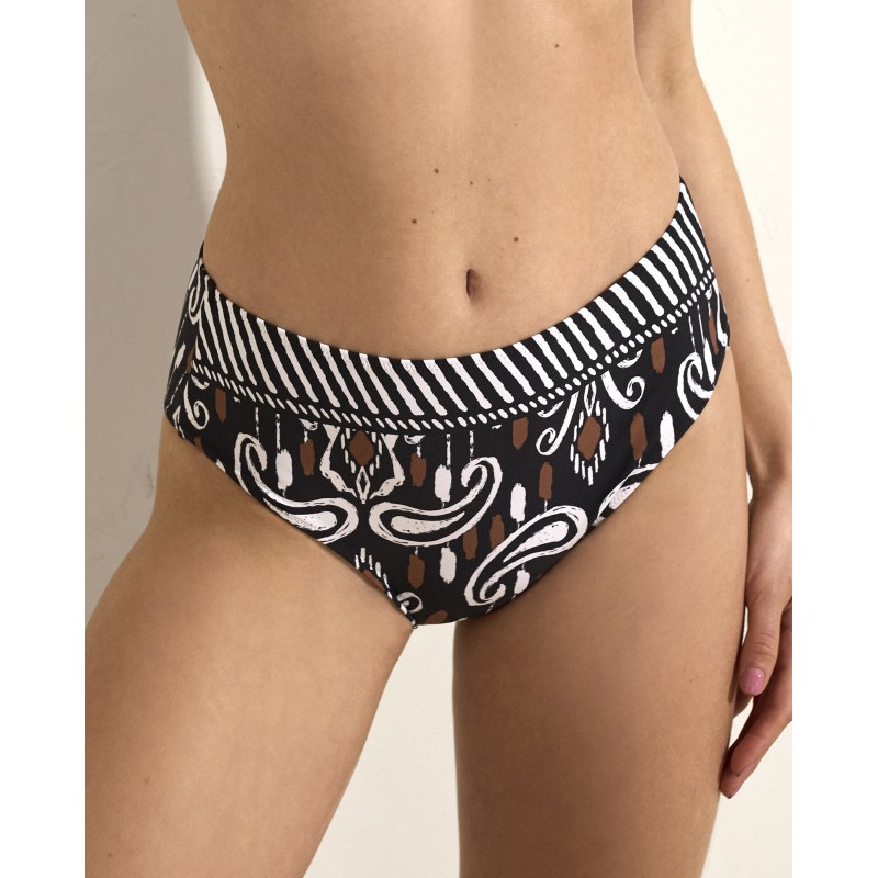 Classic cut high-rise bikini bottom. Let your personality shine with this design, where every detail of the print tells a story of colour and elegance.