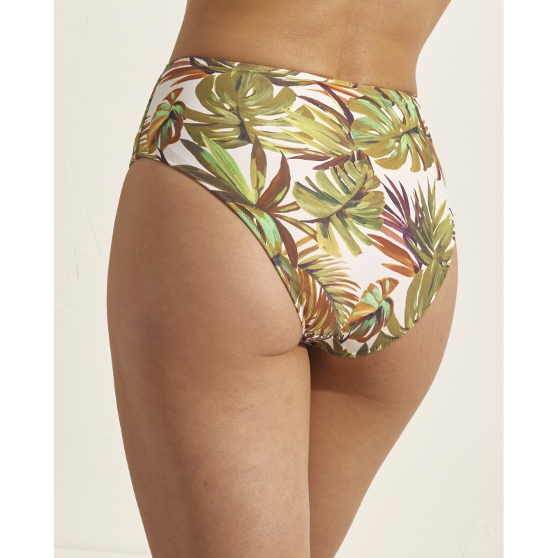 Classic cut high-rise bikini bottom. Transport yourself to a tropical adventure with this design that will make you feel alive and full of energy.