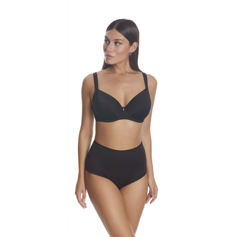 High waist girdle. Mold and reduce. The fabric of its upper part guarantees greater control and the central rear seam provides a better fit. With invisible anti-brand effect seams. The combination of its gloss-matte fabrics make it a basic but very elegant garment.