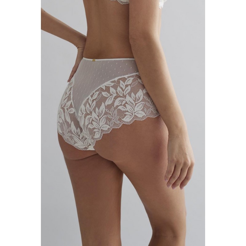 Classic high-waisted briefs with a very attractive aesthetic and character. Its floral lace makes it a very current and youthful design.