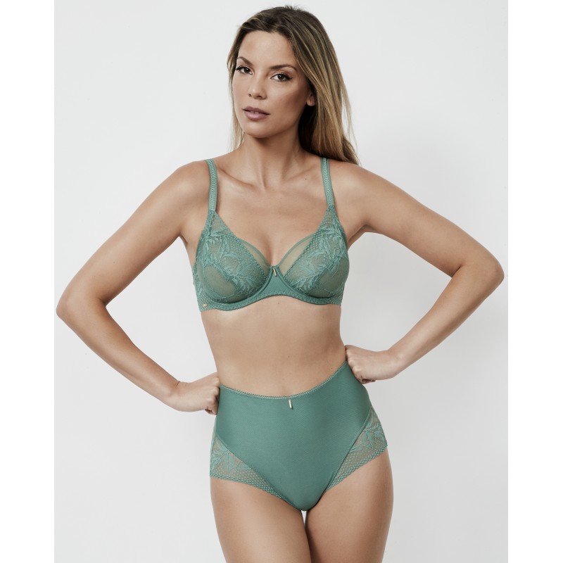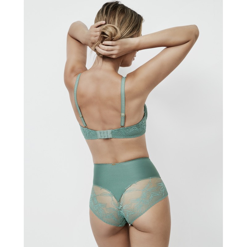Very high-waisted shaping panty with small floral lace details. It features tulle for support. This is a carefully crafted and sophisticated garment. The Malitzia collection, to which it belongs, represents a perfect dance between the delicate and the daring.