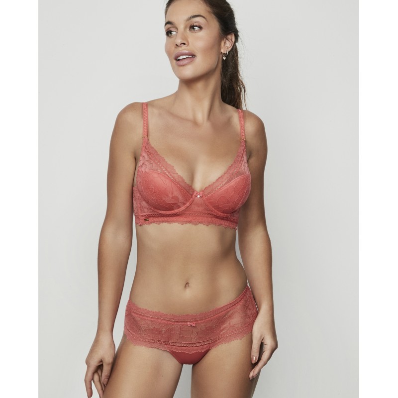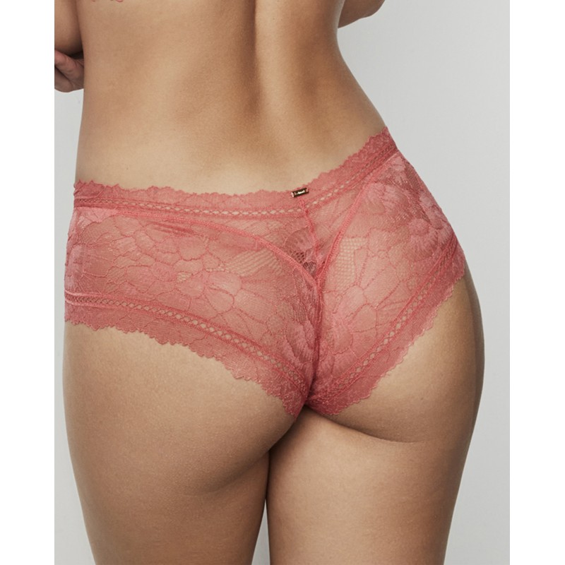 Culotte-cut panties with floral lace on the front and back, which gives the garment softness and exquisite detail. The elastic waistband does not mark. This is a delicate and sophisticated garment. The Agatha collection, to which it belongs, embodies the maturity and splendor of the brand, offering pieces that not only adorn, but transform. A collection with charm and charisma.