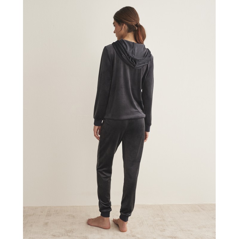 Two-piece set including a zip-up jacket with hood and pockets, and long trousers with cuffs. Made from extra-soft fabric that guarantees maximum comfort. Perfect for indoor and outdoor use.