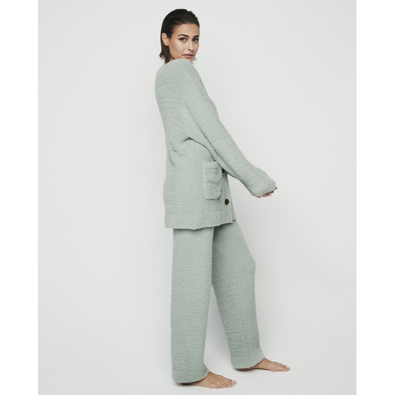 Sporty set featuring long pants and a V-neck jacket with front buttons and pockets. Its soft and comfortable fabric will make you feel like you're on cloud nine. Ideal for cold winter days.