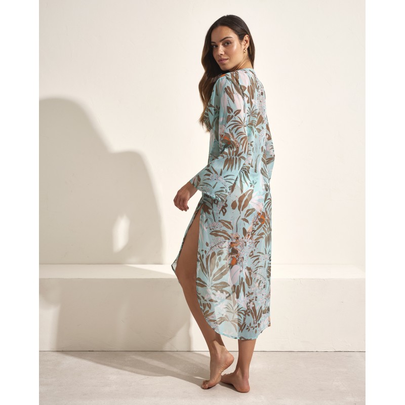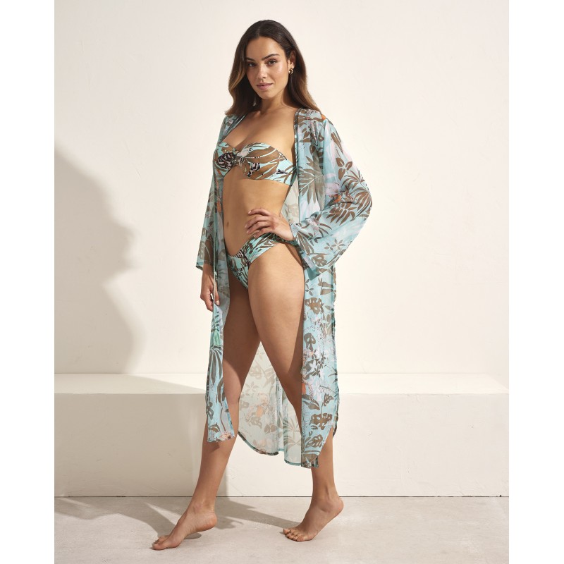 Kimono. Ideal to wear over your bikini or swimsuit. Its design captures the energy of nature, with prints that transport you to vivid and mysterious landscapes of the Amazon rainforest.