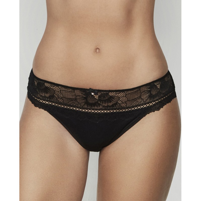 Bikini bottom combined with floral lace that continues from front to back, giving the garment softness and exquisite detail. The elastic waistband does not mark. This is a delicate and sophisticated garment. The Agatha collection, to which it belongs, embodies the maturity and splendor of the brand, offering pieces that not only adorn, but transform. A collection with charm and charisma.