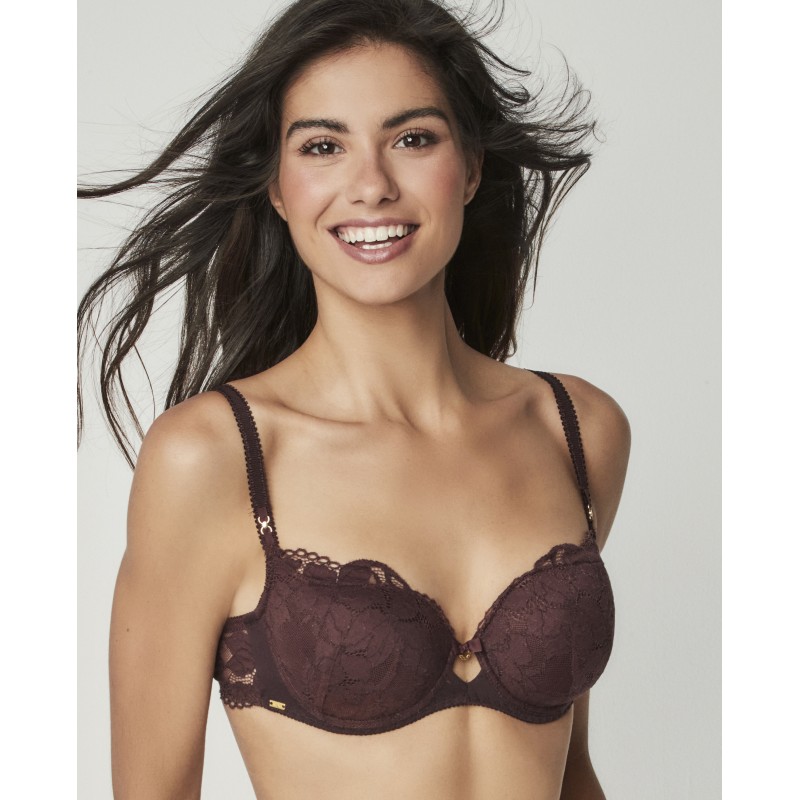 Floral lace shaping essential bra. It has underwires and foam cups. Surround effect. It has two possible width measurements of the straps depending on the size, as is the case with its closing clasp. All this to guarantee great comfort and good support. The buckle of their straps is flat, not bulky. A sophisticated piece of lingerie in which elegance and comfort go hand in hand. The Federica collection, to which it belongs, is characterized by shapes and structures crafted with precision to enhance the contours of each woman and empower her confidence, celebrating individuality and femininity in its maximum expression.