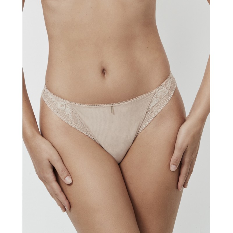 Thong panty combined with floral lace. The Malitzia collection, to which it belongs, represents a perfect dance between the delicate and the daring.