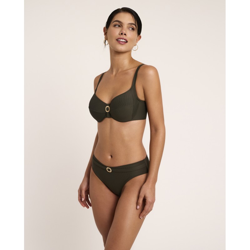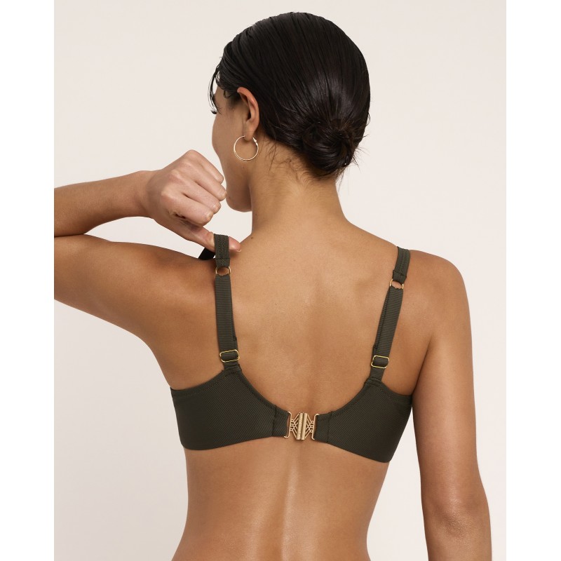 Full-coverage bikini top without padding. Features underwire and adjustable straps for a perfect fit. Its uniform color and timeless style make it ideal for showing off this season.