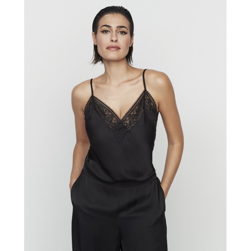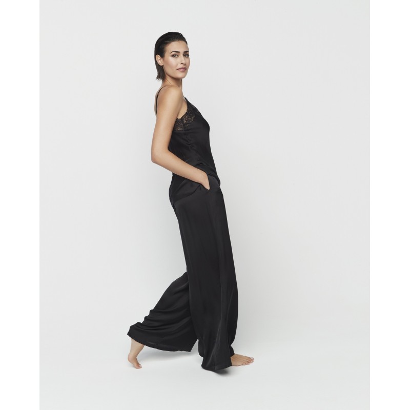 Women's two-piece pajama set. Includes a top with adjustable straps and long pants with pockets. A set with impeccable cuts and luxurious finishes, perfect for a glamorous night's sleep. Its design is part of the Aurum collection, created in collaboration with Pilar Rubio to commemorate our 50th anniversary.