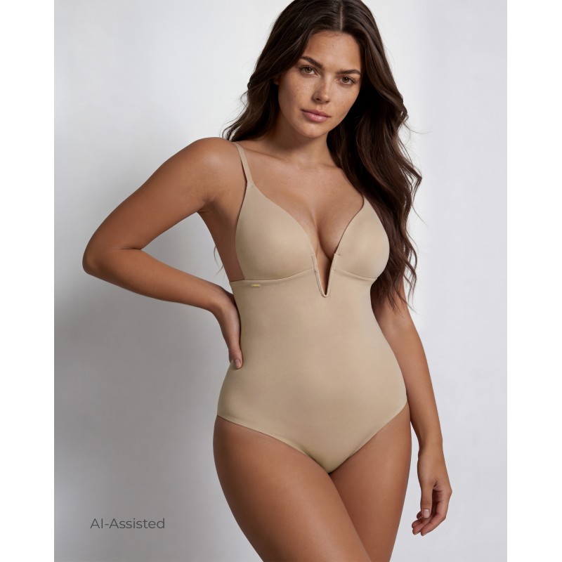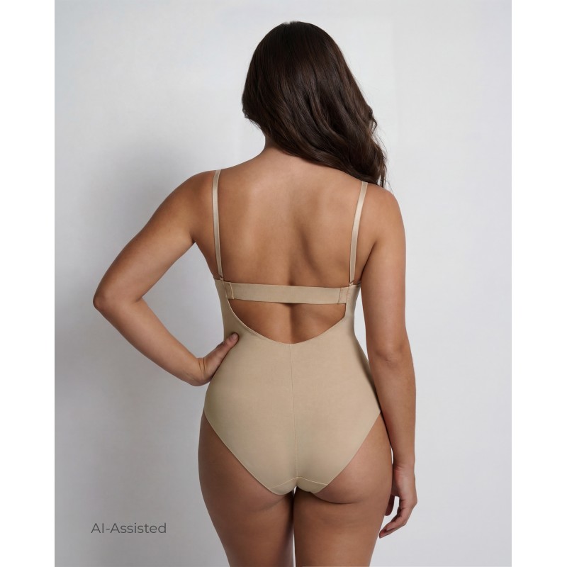 Lipo effect body without leg that reduces and stylizes the figure, with bare back, multiposition shoulder straps and super pronounced neckline. Includes an ultra-elastic opening for intimate use. This bodysuit is the solution for that super-fitted dress you were wearing your underwear with. It is very elastic and does not mark under the clothes. Reduces volume, defines the contour, enhances the chest, is ideal for pronounced necklines and allows to carry bare backs. It'll be like your second skin.