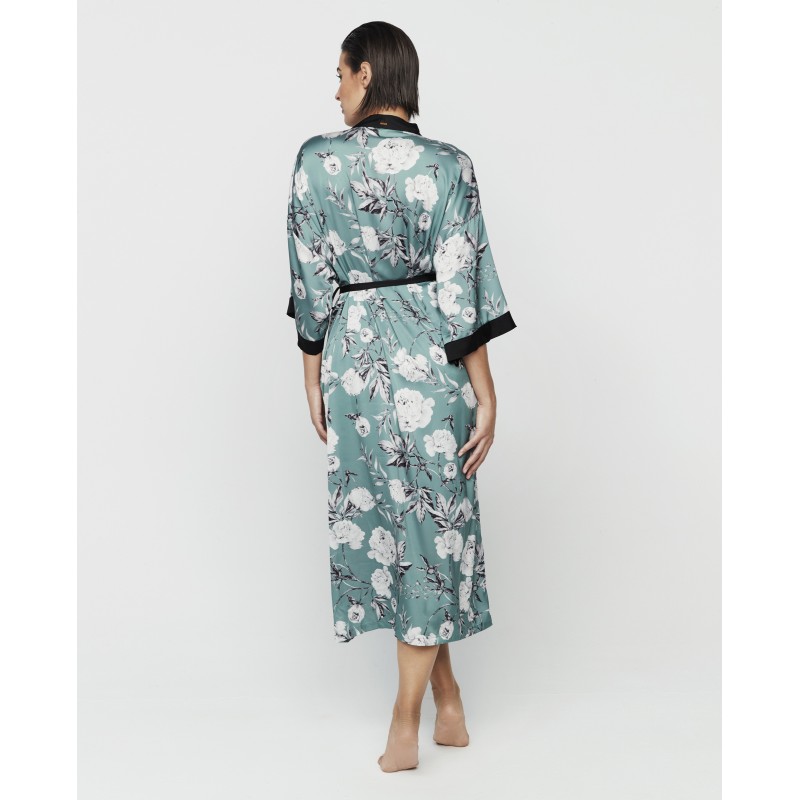 Long, half-sleeved nightgown with a tie at the waist. Floral print. An elegant and sophisticated piece. The Malitzia collection, to which it belongs, represents a perfect dance between the delicate and the daring.