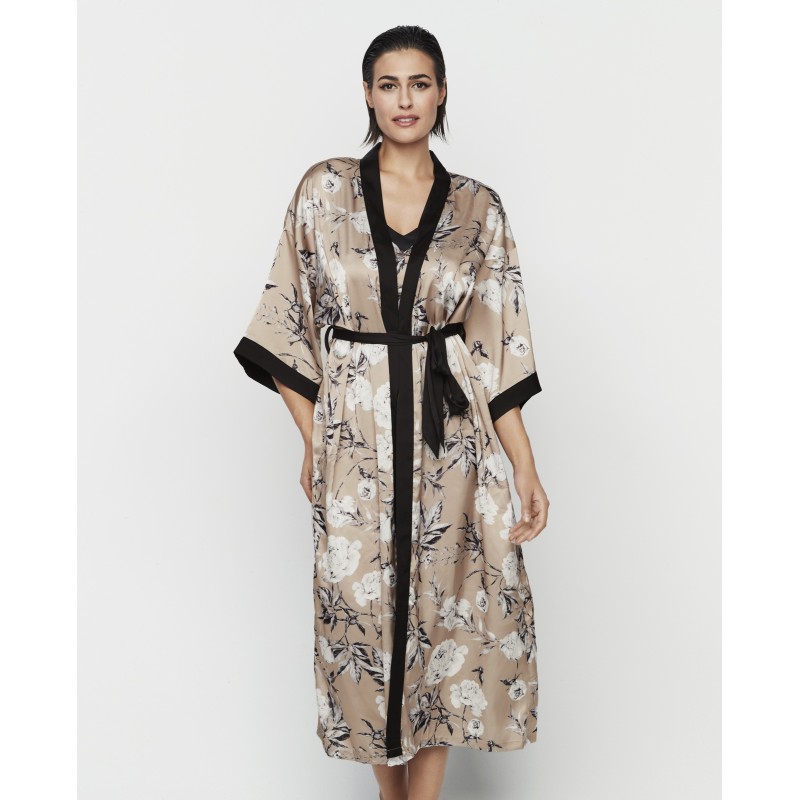 Long, half-sleeved nightgown with a tie at the waist. Floral print. An elegant and sophisticated piece. The Malitzia collection, to which it belongs, represents a perfect dance between the delicate and the daring.