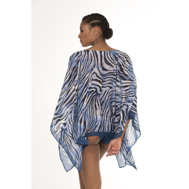 Long shirt with zebra print, very soft and delicate touch. To use on your swimsuit or bikini. Blue.