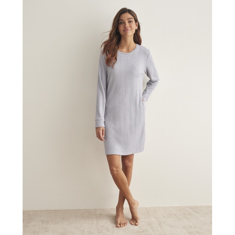 Long sleeve nightgown. With round neck and pockets. Made of soft, warm and textured fabric. A simple and timeless design, perfect for cold nights.