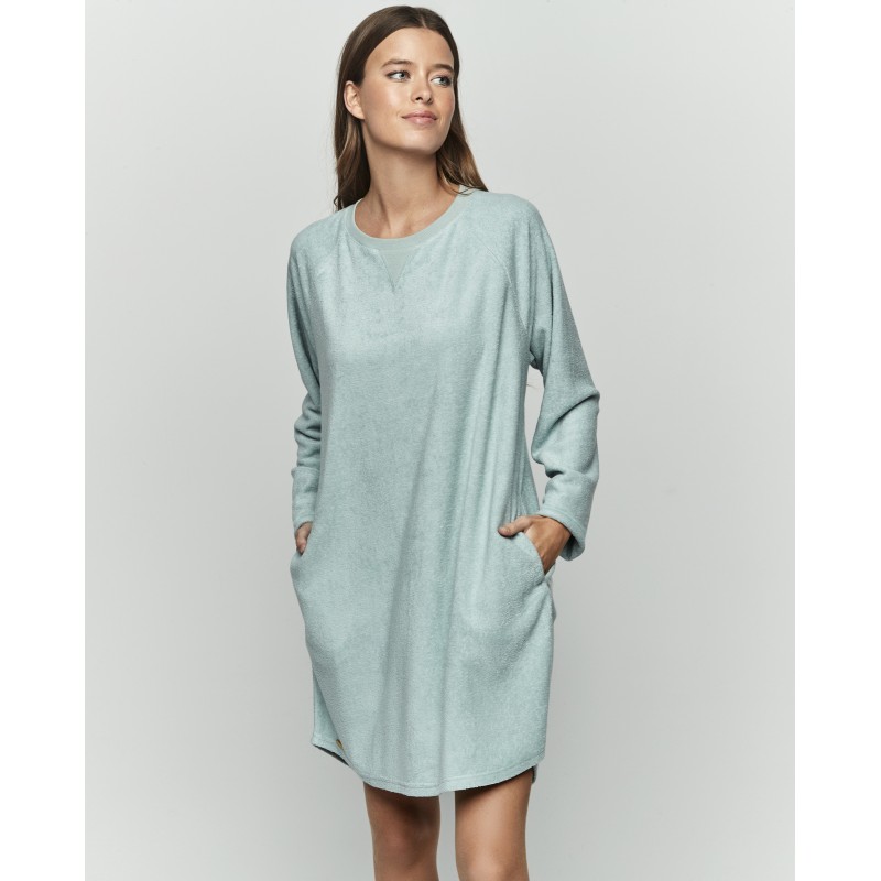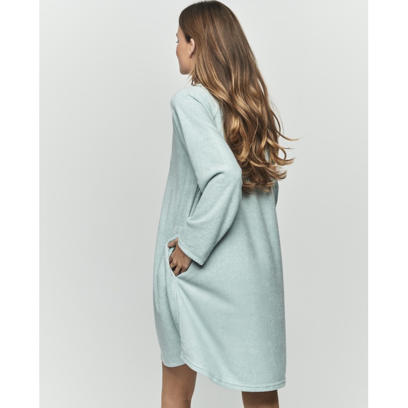 Long-sleeved nightgown. Made of extra-soft fabric, with a round neck and knee-length. A garment designed to envelop your nights in warmth and comfort, because there's no more comforting feeling than feeling at home.
